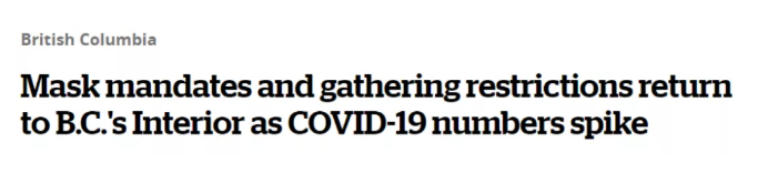BC卫生局于8月20日宣布,本月早些时候对Okanagan中部实施的卫生限制措施将正式扩大到整个内陆地区。由于疫情逐步走向不可控的状态,BC卫生局已重新收紧卫生禁令。
