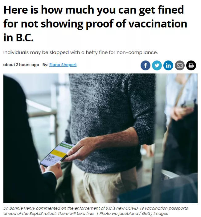 根据周二的新闻发布会,BC省卫生官员宣布,任何想在9月13日,也就是下周之后进入以下场所和活动的人都需出示疫苗接种证明: