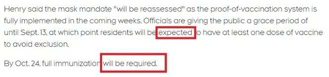 而且BC省卫生局局长表示在10月24日前完全接种疫苗将不是个人选择,而是强制的,不然您将哪也去不了只能呆在家里。