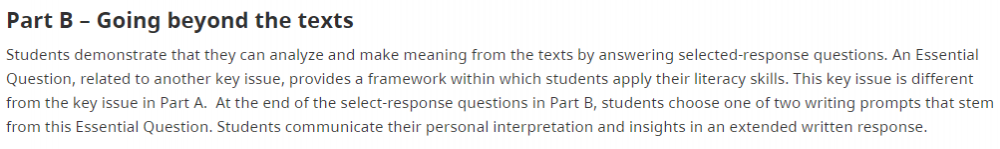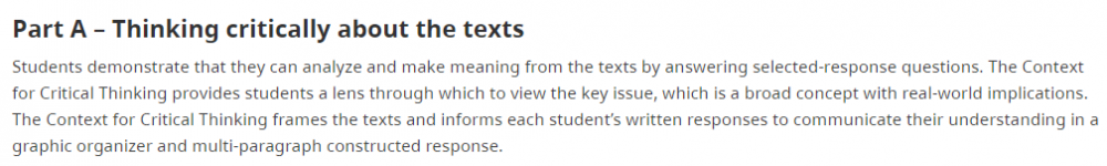 这项考试的目的是评估学生运用批判性和反思性思维分析文章的能力,它基于学生从学前班到12年级的多学科知识运用。