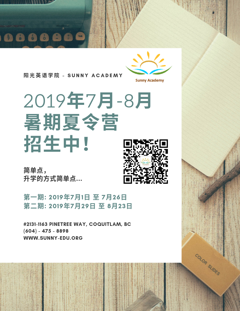 | SUNNY ACADEMY 2019 SUMMER CAMP -- 阳光英语学院2019年暑期夏令营 | |||